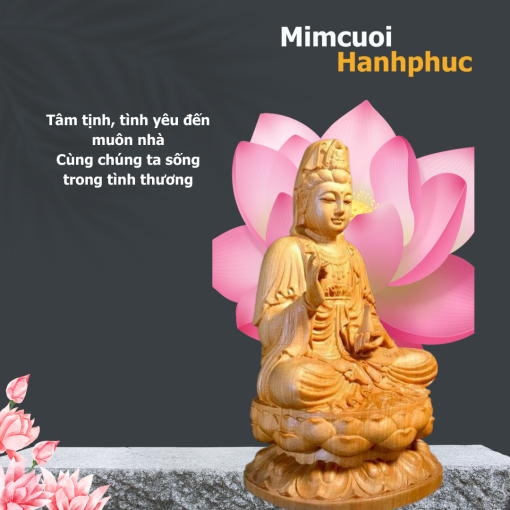 Tượng Quán Thế Âm khắc gỗ Thuja ngồi đài sen, trang trí xe ô tô, trang trí phòng khách, không gian gia đình MCHH 011